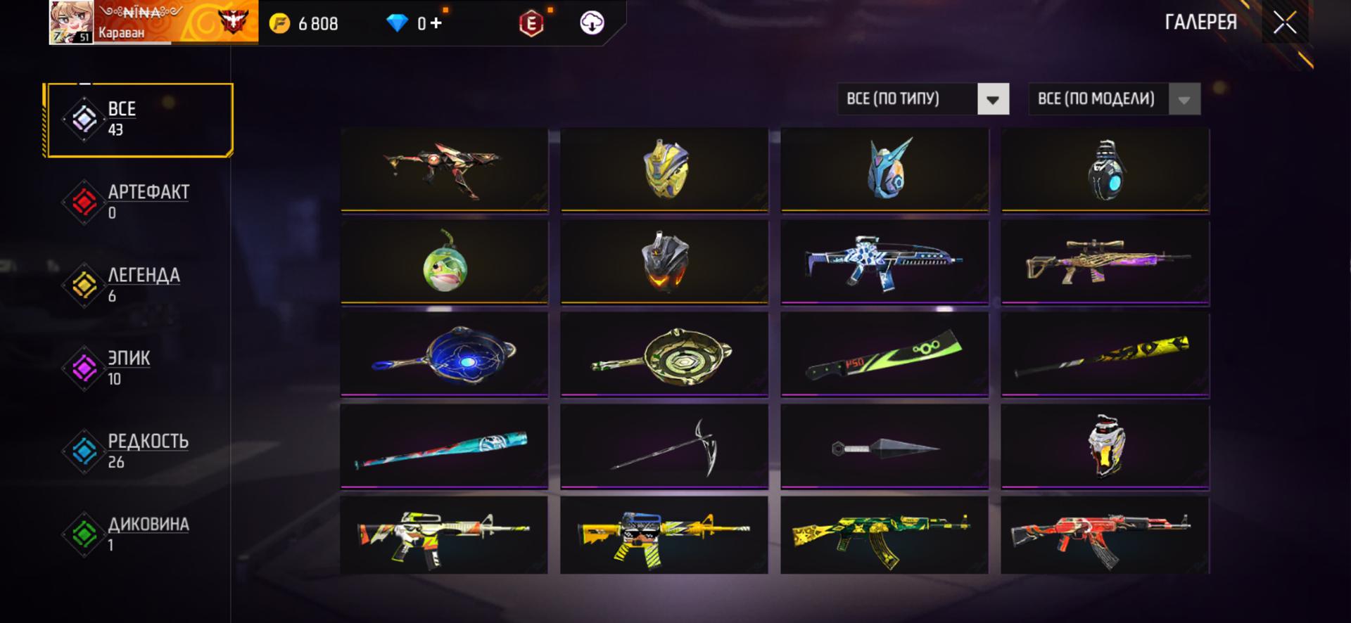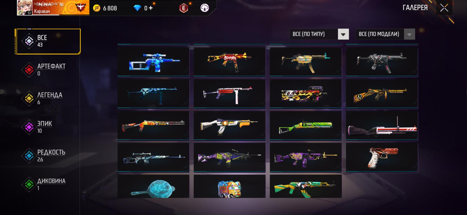 🌈Скины на оружие: 43;