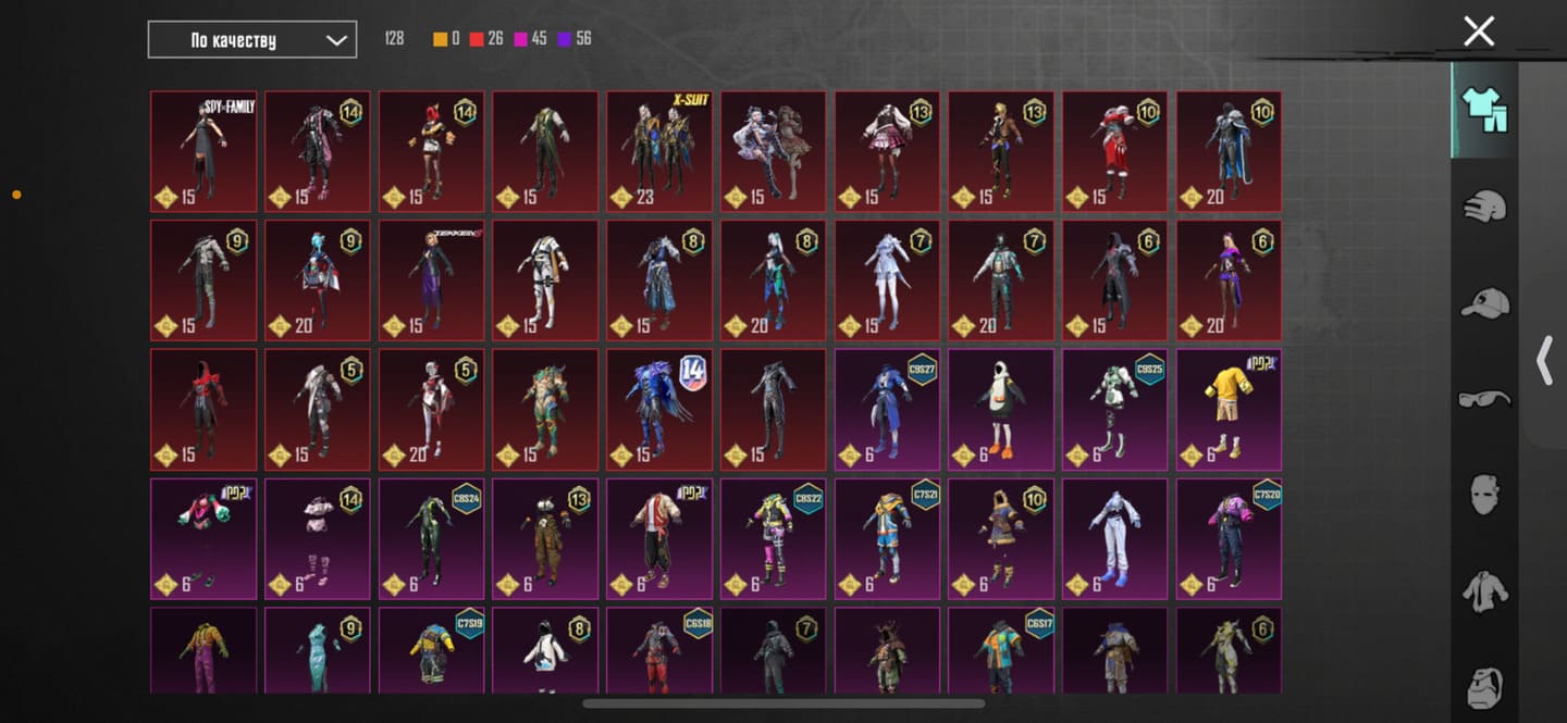 👚Топ костюмы: 26; ⭐️Royale Pass: с 5 сезонна; 🌈Скины на оружие: 13;