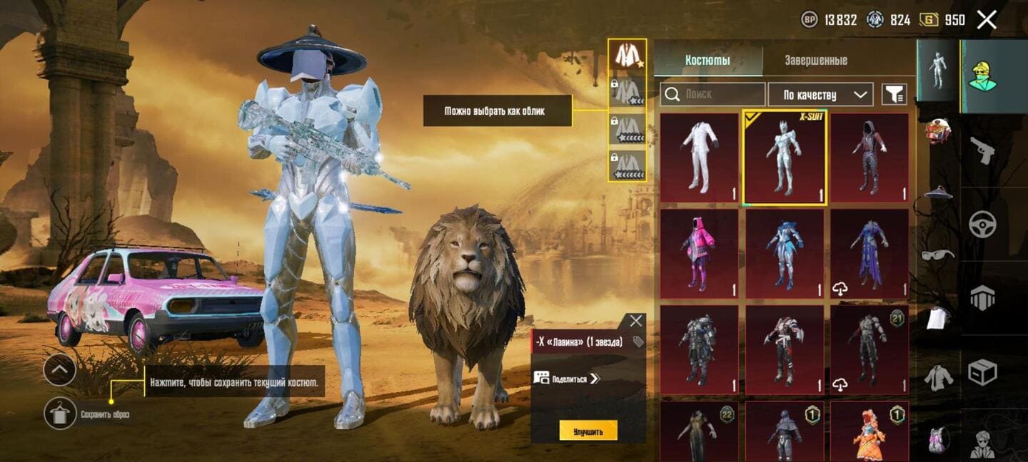 👚Топ костюмы: 26; ⭐️Royale Pass: с 5 сезонна; 🌈Скины на оружие: 13;