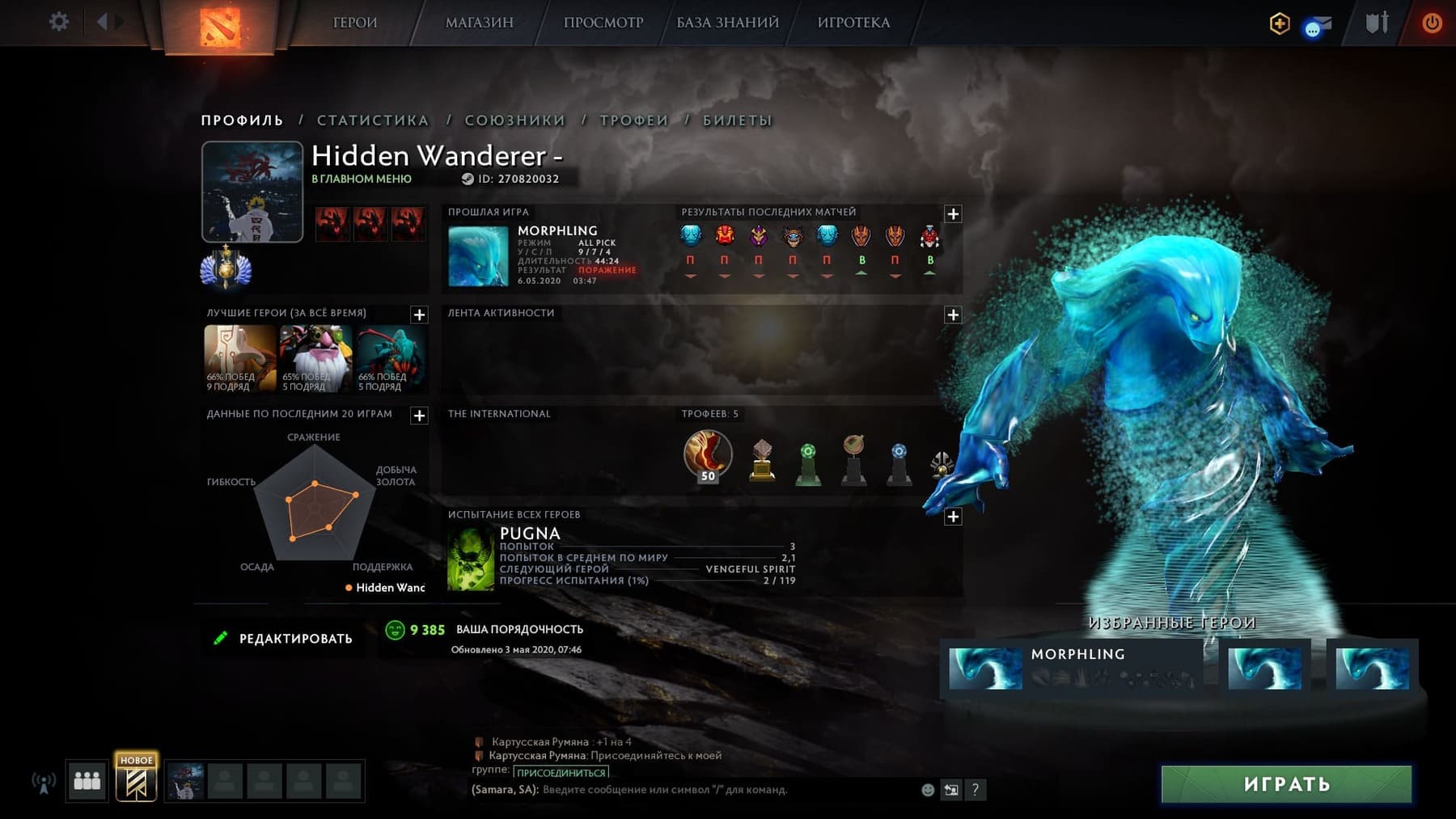 🏅 Ранг: Мастер⭐️ Уровень: 300💰 CP: 120🕹 Игры: 789✅ Все привязки отсутствуют